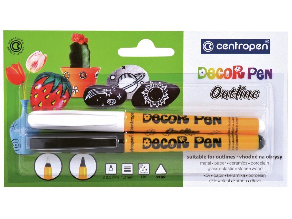Fixy na kontury Decor Pen Outline Centropen 2628, černá a bílá